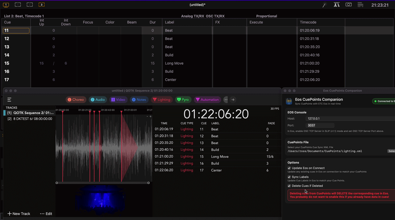 Essentially, this turns CuePoints into a live timeline editor for Eos and has made it much easier for me to produce timecode-locked lighting for shows.